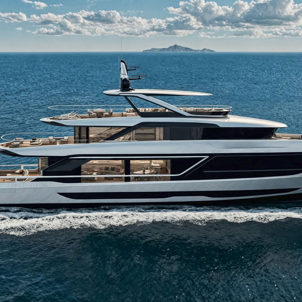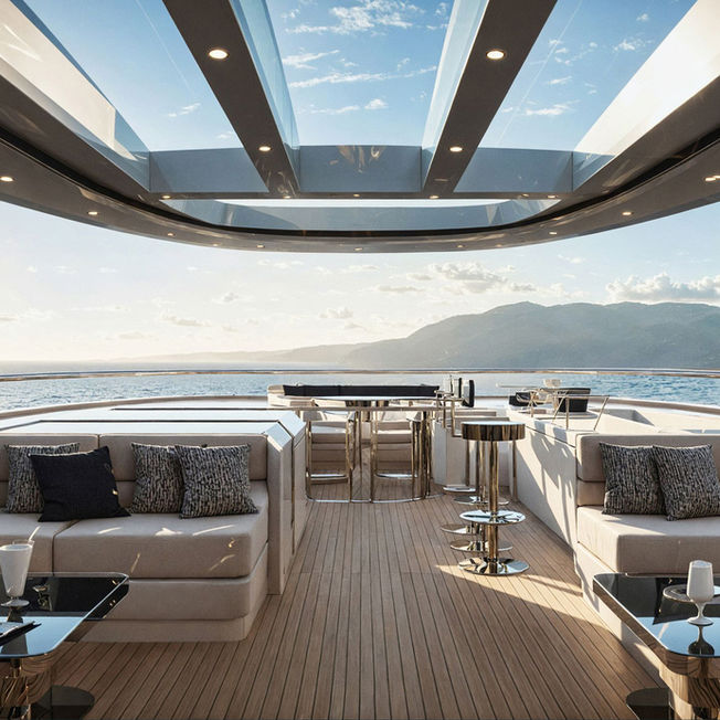 The Azzurra 40 showcases a spacious aft deck up to 85 sqm with an optional pool, a generous main saloon (60 sqm), and a 55 sqm owner’s suite on the upper deck featuring a 40 sqm private balcony. Owners looking for a sophisticated yacht in the 40 meter range will find the Azzurra 40 perfectly balances performance, luxury, and efficient operation.