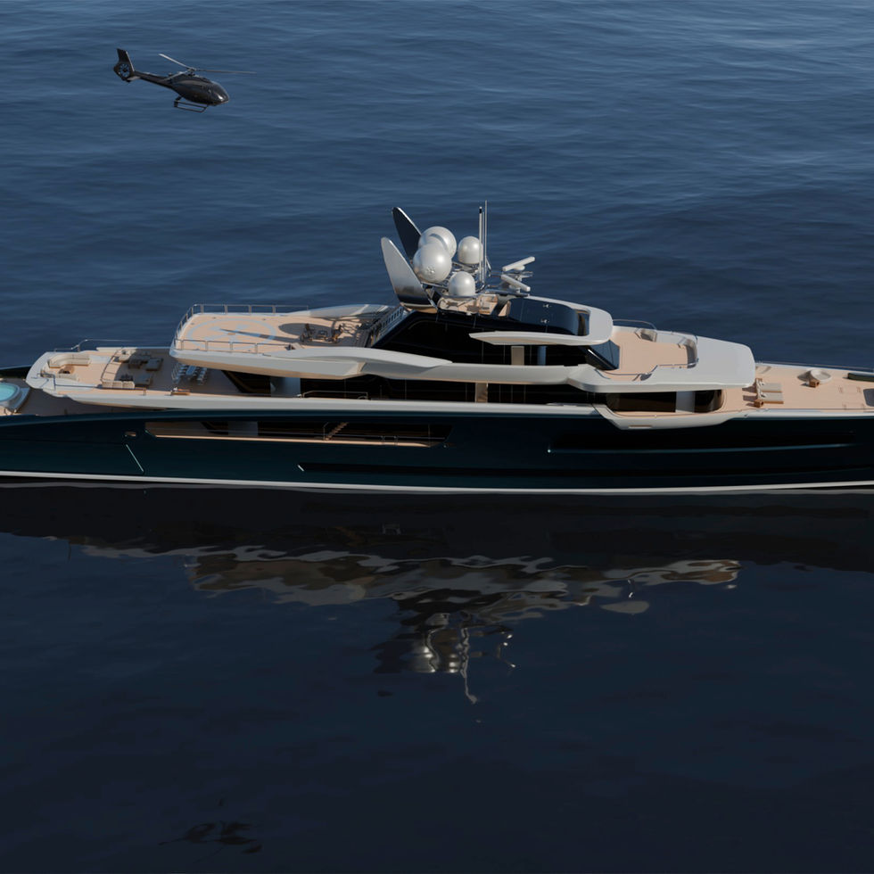 Despite its length of just a bit over 100 metres, we’d like to call ‘Loup De Mer’ the sporty coupe amongst the super yacht. Yes, there’s a sizeable pool, a beach club with easy access to the bathing platform, a well sorted tender garage and what would be considered ample space for the owner and up to 12 guests. There’s even a proper helicopter pad! But ultimately, with her low and powerful profile, ‘Loup De Mer’ really is designed as a fast and efficient elegant head-turner.