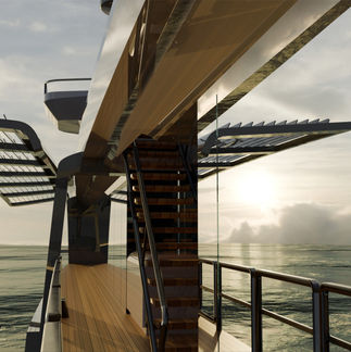In terms of specifications, I don’t have much yet. Passepartout is 68m long and could be build either completely aluminium or with a steel hull and aluminium superstructure. That might take care of any ice classification. The vessel is fairly narrow to allow for a smooth and efficient journey under all weather conditions. That way the engines could be relatively small, and you won’t have to carry around huge amounts of fuel for longer travel. I’d say it should definitely be diesel electric with perhaps larger battery banks so you could cruise a reasonable distance in total silence...